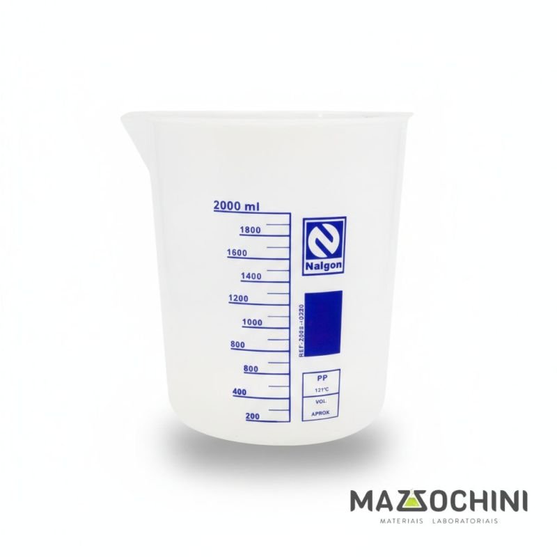 Copo becker forma baixa em polipropileno (PP) Resistência à maioria dos produtos químicos; Contém bico projetado, não permite gotejamento; SUBD. 100 ML Graduado em silk-screen em todas as capacidades; Autoclavável à 121ºC Diâmetro boca 16,3 cm; Altura 18,8 cm; Diâmetro fundo 13,4 cm; Subdivisão 100 ml Capacidade 2000 ml