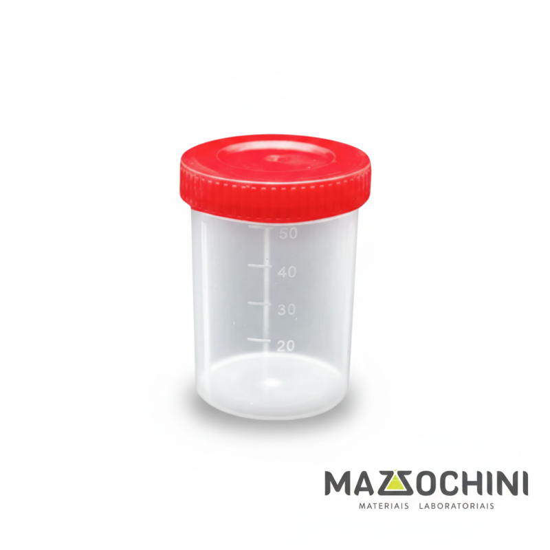 Finalidade: Indicados para coleta de amostras de fezes, urina, escarro e esperma. Versões: Sem pá individual. Sem pá estéril individual. Informações Técnicas (Nota): Vedação hermética. Graduação perfeita de 10ml em 10ml e total visualização. Produzidos com matéria prima virgem, isenta de lubrificante. Processo de produção totalmente automatizado e submetidos a rigorosos controles de qualidade. Produzido em sala limpa. Versão estéril: Esterilizado por radiação ionizante.