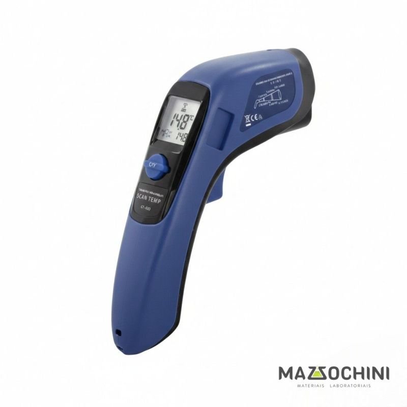 - Termômetro infravermelho com mira laser e visor LCD iluminado; - Informação de máxima em tempo real (MAX); - Desligamento automático após 15 segundos sem uso; - Tempo de resposta de 1 segundo; - Escala em ºC e ºF; - Resolução focal 12:1; Aplicação: - Ar condicionado; - Processamento de alimentos; - Agricultura; - Indústria de petróleo e derivados; - Automóvel; - Fotográfica; - Armazenagem de alimentos; - Refrigeração; - Fermentação; - Farmácia; - Controle de processo; - Laboratório; - Aquecimento e ventilação; - Gerenciamento de energia; INFORMAÇÕES TÉCNICAS Faixa de medição: -60°C a +500°C (-76... +932ºF); Faixa de operação: 0... +50°C (32... + 122ºF); Exatidão, (*Tamb = 23 ±3ºC): ±2% da leitura ou ±2ºC/4ºF, o que for maior; Emissividade: 0,95 fixo; Resolução: 0,1°C/ºF entre -9,9... +199,9ºC 1ºC/ºF fora desta faixa; Tempo de resposta (90%): 1 segundo; Distância focal: 12:1; Vida útil das pilhas: Aproximadamente 14 horas de uso contínuo;