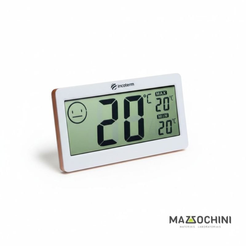 - Máxima e Mínima para temperatura e umidade - Indicador do nível de conforto - Imã para fixação em superfícies metálicas Principais Aplicações - Monitoramento de ambientes climatizados INFORMAÇÕES TÉCNICAS Faixa de medição temperatura: -10°C a 50°C Resolução temperatura: 1°C Exatidão temperatura: ± 1°C Faixa de medição umidade: 20% a 95% UR Resolução umidade: 1% UR Exatidão umidade: ± 5% UR